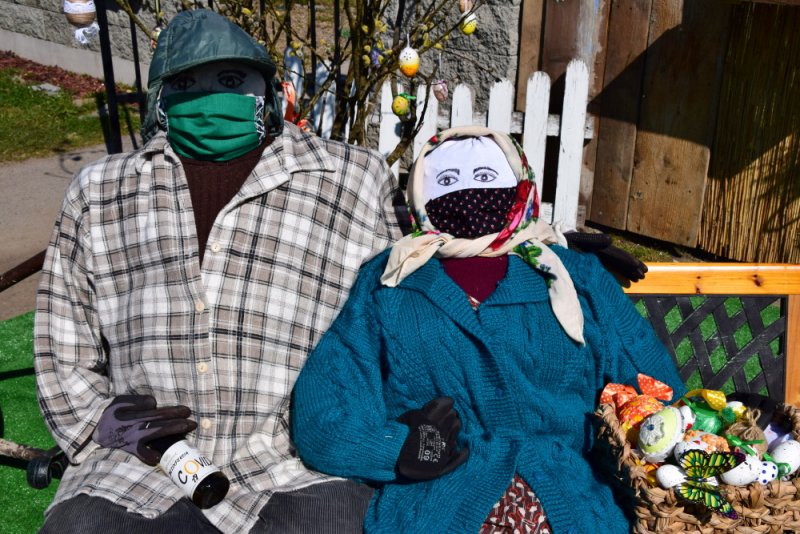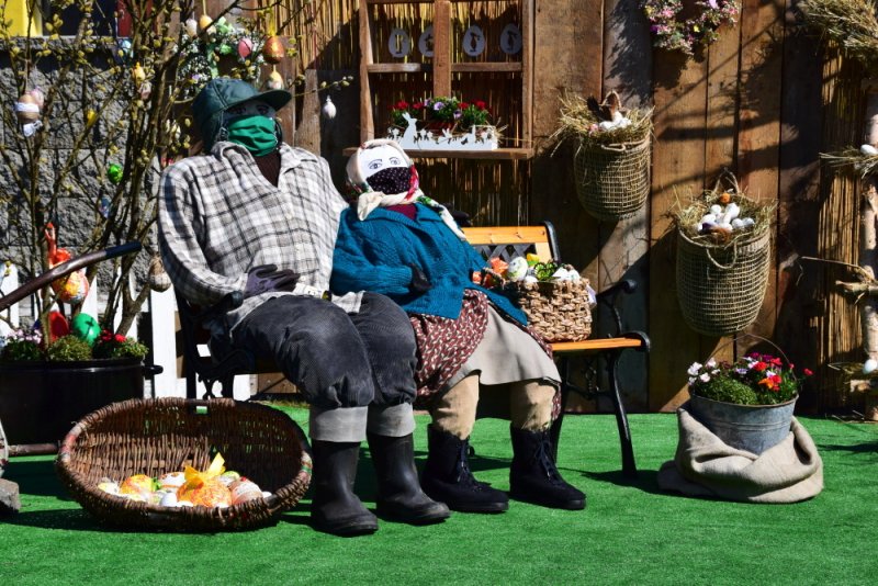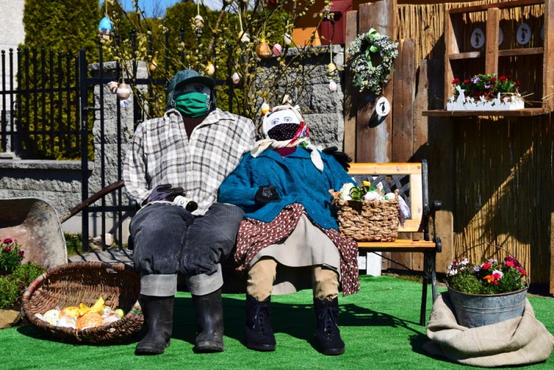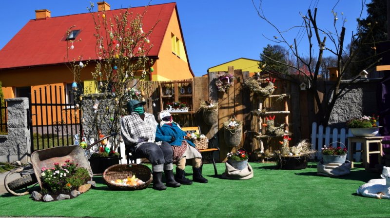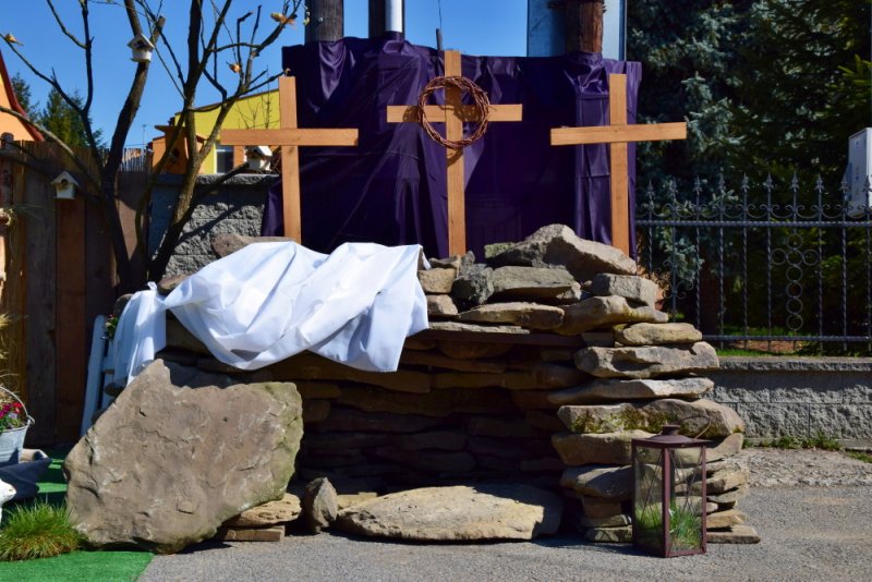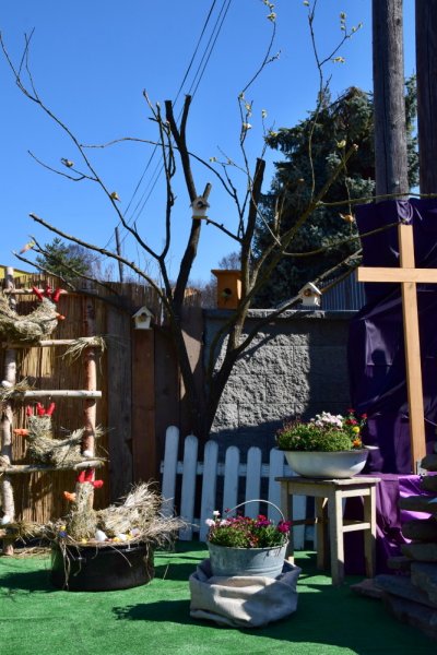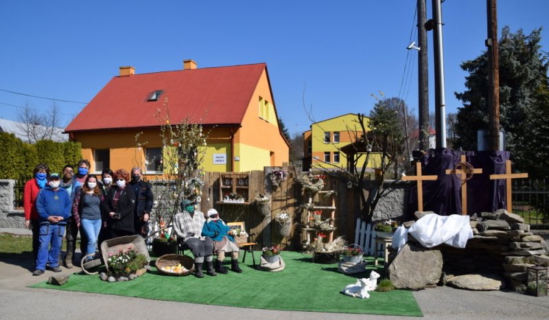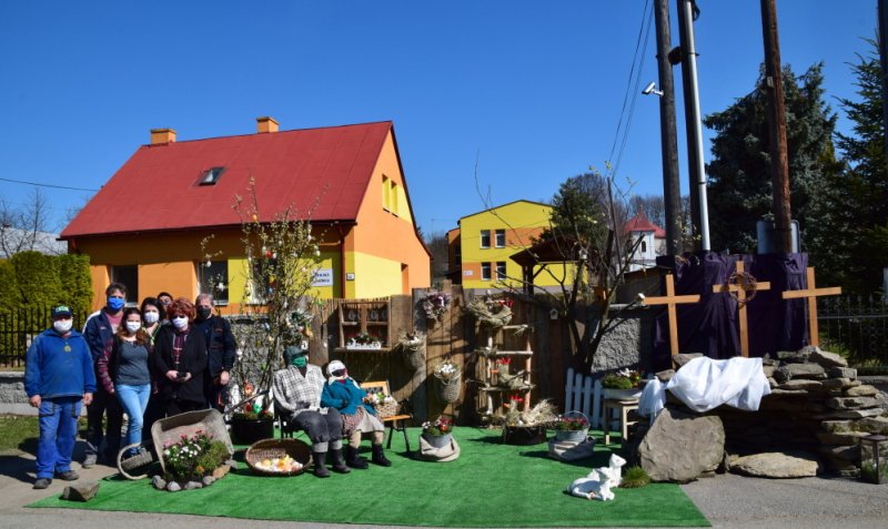 Ale to, čo nám tak každý rok robilo radosť toľkokrát na deň, predsa vyrástlo spod rúk šikovných zamestnancov našej obce – prekrásna Veľkonočná scenéria na obecnom parkovisku pred budovou školskej knižnice. Musím sa priznať, že chvíľka zastavenia sa pred ňou zapôsobila určite silou balzamu na nie jednu ustarostenú dušu tejto doby. Pani starostka sa obrátila s prosbou na svojich zamestnancov a tí dokázali to, čo ste videli a mnohí ešte teraz môžete vidieť. Nechýbal skalný hrob, Golgota, Víťazstvo Veľkej noci a starký so starkou v čase pandémie v ochrannom rúšku, rukaviciach a s dezinfekciou v rukách, s idylkou Veľkej noci a vôbec sviatkov jari na našej dedine.